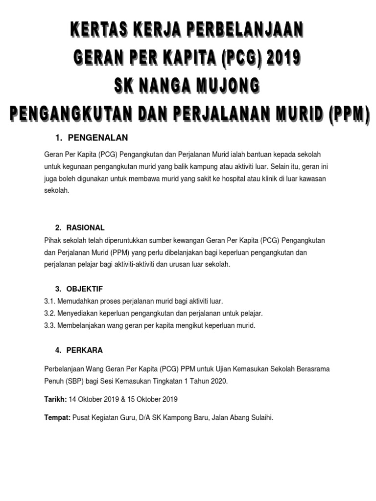 1000 pagi Latihan Dalam Kumpulan 2 Bacaan pendek dalam solat 1030 pagi Rehat dan kudapan. Bagi setiap sesi pemulihan bilangan murid. Menurut Kamus Dewan Edisi Ke-4 kertas kerja bermaksud makalah artikel atau rencana bertulis yang mengandungi perbincangan mengenai sesuatu persoalan dan cadangan.